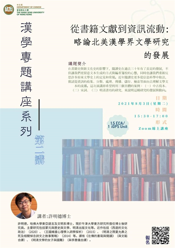 Under the influence of the history of books and the history of new culture, the history of reading has made great progress in the past 30 years, which not only makes us pay more attention to the way of text generation and the editor’s mentality of proofreading, but also makes us rethink many stereotypes and conventions in the original literary history. In recent years, the history of reading is more based on information science, trying to understand the streaming of literary texts from the aspects of information collection, classification, processing, dissemination, storage and retrieval. In this speech, I hope to illustrate the development and trend of this kind of research by using three specific cases: (1) writing manuscripts in the Middle Ages, (2) Song Ci, and (3) the study of bookshops in the Ming and Qing Dynasties.