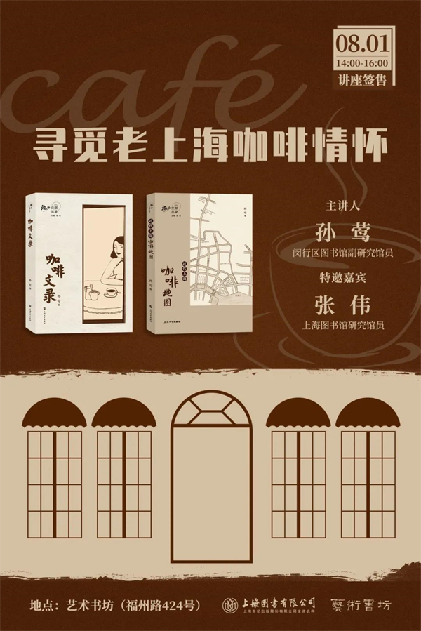 In the mid-19th century, coffee, as an exotic product, took root in Shanghai, a land where Chinese and Western cultures merged, and then gradually merged into the texture of the city. Coffee culture has become an important part of Shanghai culture, and coffee has also become a unique business card of Shanghai. On August 1st, we invited Sun Ying, deputy research librarian of Minhang District Library, and Zhang Wei, research librarian of Shanghai Library, to give a lecture on "Looking for Old Shanghai Coffee Feelings" in the Art Bookstore. During the activity, the two guests will lead the readers to start a special "taste journey" around the interesting culture, celebrity complex and historical events related to coffee.