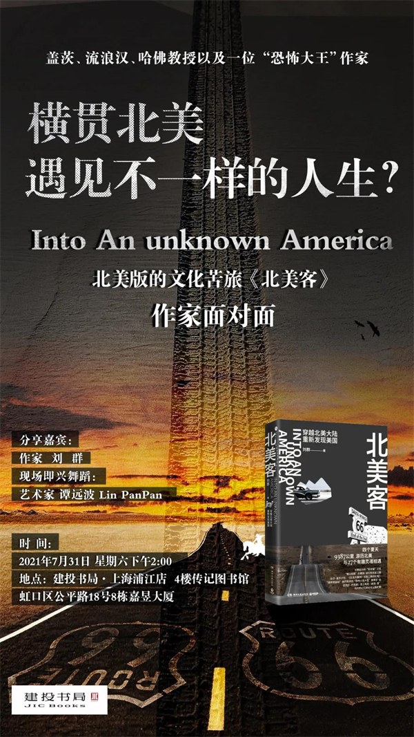On the afternoon of July 31st, Jiantou Bookstore will jointly collect Tianjuan and invite Liu Qun, the author of North American Guest, to share his 4-year, 9387-kilometer North American version of "Cultural Journey". During the activity, he will tell several life stories selectively, and dance artist Tan Yuanbo and impromptu body performer Lin Panpan will bring impromptu dance performances. Let’s meet interesting souls on the spot.
