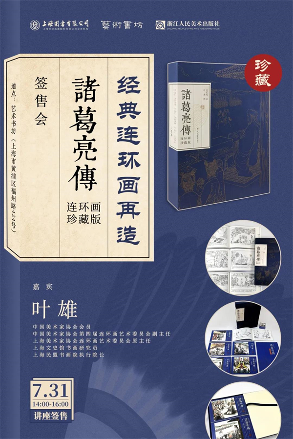On July 31st, Ye Xiong, a famous comic book artist, will hold a signing ceremony in the art bookstore with his masterpiece Zhuge Liang Chuan (comic book collector’s edition).