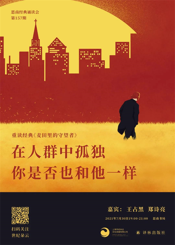 Seventy years ago, on July 16th, American writer J.D. Salinger’s novel The Catcher in the Rye came out, which influenced the youth of generations. On the evening of July 30th, guests Wang Zhan Hei and Zheng Shiliang will come to Sinan Bookstore to take you into the inner world of the protagonist Holden again.