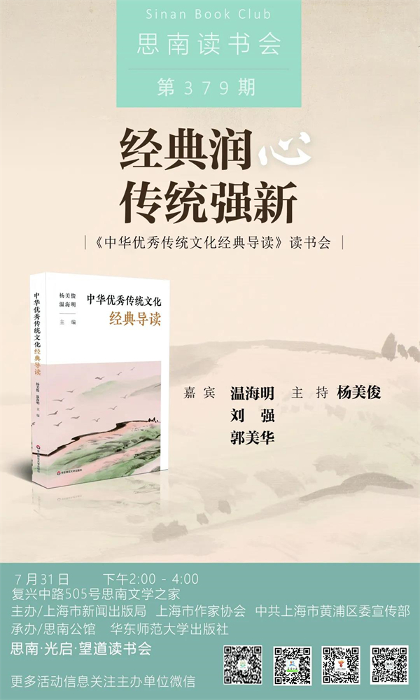 What does traditional culture mean to us today? Internally speaking, it can respond to our inner needs, nourish our hearts, and thus produce life ideals, ethical concepts and aesthetic tastes; Looking to the outside world, we can point to the educational goal of educating people in the new era, and use Chinese excellent traditional cultural classics to achieve the current cultural education and cultural power. "Those who get Chinese get the world, and those who get traditional culture get Chinese". What is the relationship between Chinese excellent traditional culture and the future development of teenagers? How should we view Chinese excellent traditional culture today? On the afternoon of July 31st, in Sinan Literature House, the creative team of "Introduction to Classic of Chinese Excellent Traditional Culture" will guide us into the classic of traditional culture, tell the story behind the classic, and explain why the classic becomes a classic, how the classic becomes a classic, what is the reading value of the classic, what is the reading method of the classic, and how we can learn from the classic.
